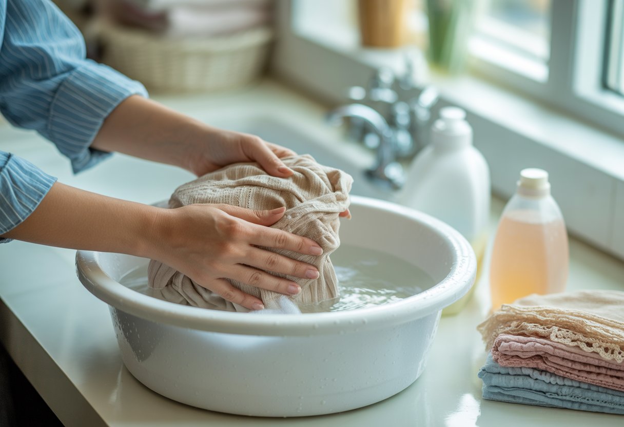 Roupa branca precisa de uma dose extra de paciência. Eu mantenho um cesto só para elas. Sempre uso sabão neutro e água fria, porque já me arrependi tentando testar receita de internet.